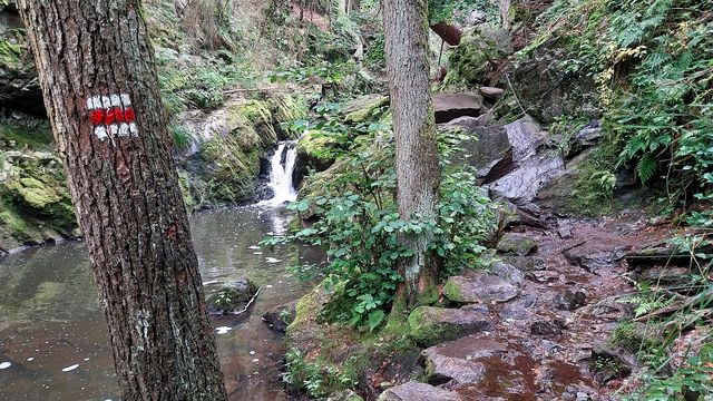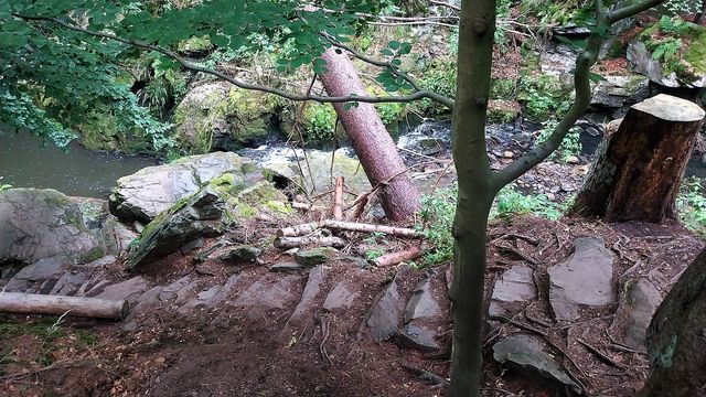 Drobná přeprška cestou říčním údolím trvala asi 5 minut, po ní jsme museli dávat větší pozor při přecházení po kamenech a kořenech.