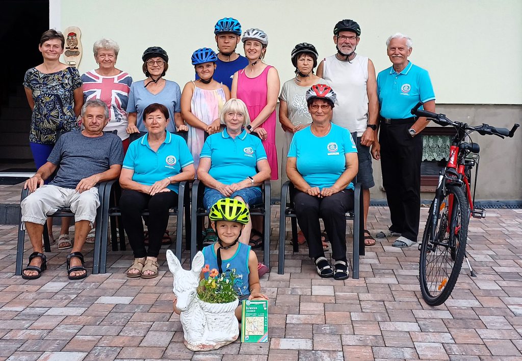Zleva čtyři turisté Kabátkovi, František Janeček, Míla Bradová (informuje nás o historii zdejšího církevního areálu), manželé Zerzánkovi a Libuška Bohatá – na fotografii chybí dvě děvčata Kabátkova.