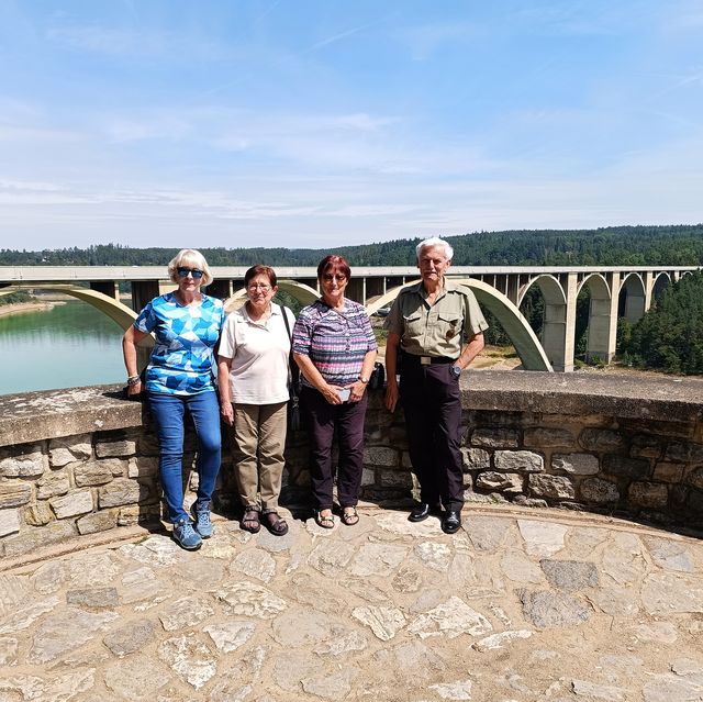 Odpočinek u vyhlídky na Podolský most během cesty na šumavská Borová Lada. Foto Libuše.