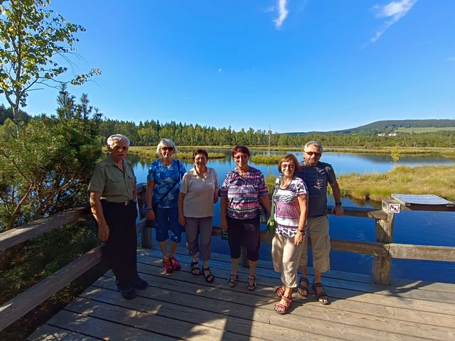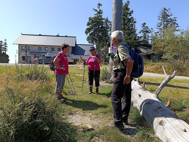 Dnes navrhla Miluška pěší výlet na Pancíř a do Železné Rudy – vydali jsme se na něj společně se Zerzánkovými, tedy celkem 6 lidí. Ráno jsme vyjeli v 8.30 autobusem do Kvildy, odtud v 9.50 do Železné Rudy. Vystoupili jsme na zastávce Špičák u lanovky na Pancíř – přestup v mezistanici na Hofmankách – celkem za 100 Kč jsme zakrátko byli na Pancíři. Během jízdy jednosedačkovou lanovkou i poté z vrcholu Pancíře byly dobré výhledy a absolutní pohoda. Délka lanovky je 2.740 m, převýšení 348 m. Nevynechali jsme ani rozhlednu, která je součástí chaty.