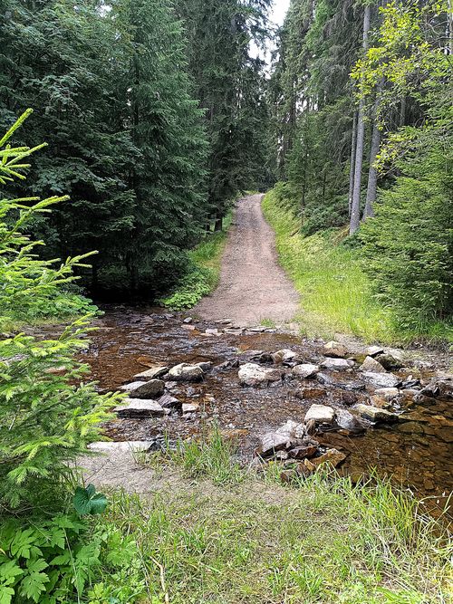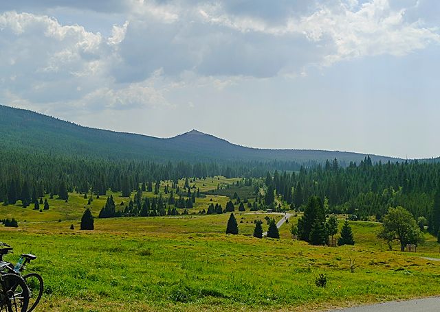 Rozhlídly jsme se po místech, kterými jsme dříve buď chodívali pěšky či jeli na kole či na běžkách – všechno je jinak, ale pořád je nač se dívat a zač děkovat… Vrátily jsme se na Javoří pilu, pod přístřeškem snědly sebáky a po ČTZ se vracely na Rybárnu a do Modravy – užívaly jsme si Roklanského potoka, byla jsem šťastná a vzpomínala na Mirka. Bylo 32 °C, ale větřík ten výpal trochu mírnil – v tomto úseku jsme ušlapaly po silničkách 12,5 km.