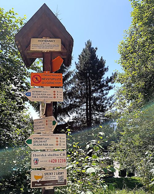 Od Hofmanek jsme putovali po modře značené turistické trase do Železné Rudy.