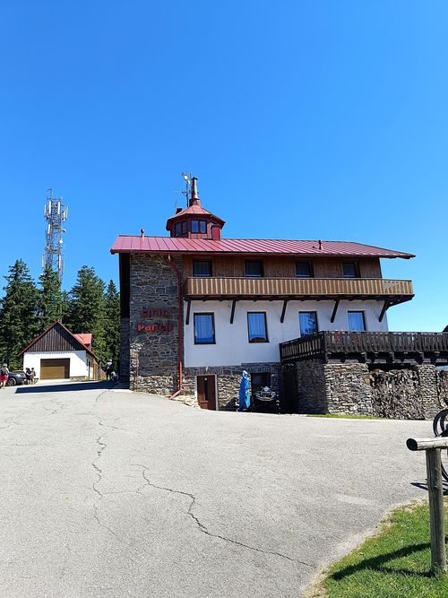 Chata na Pancíři s rozhlednou ve výšce 1214 m n. m. na Pancířském hřbetu.