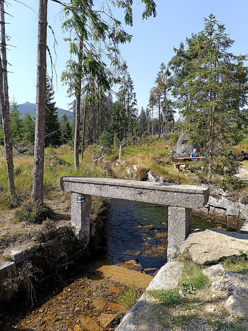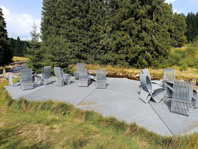 Vyhlídková terasa nad Modravským potokem v místě soutoku s potokem Roklanským nedaleko modravského parkoviště.
