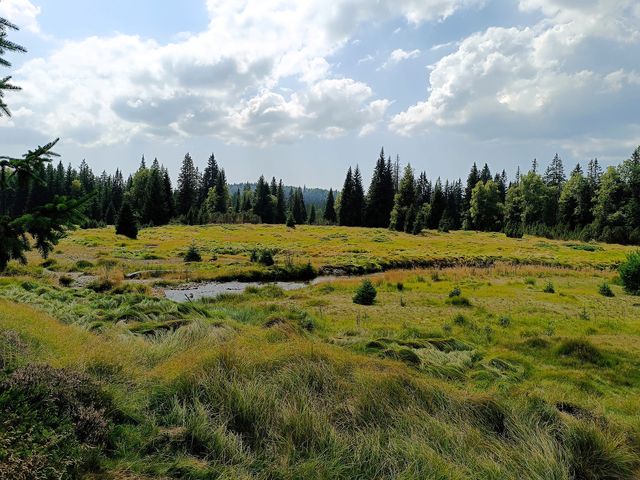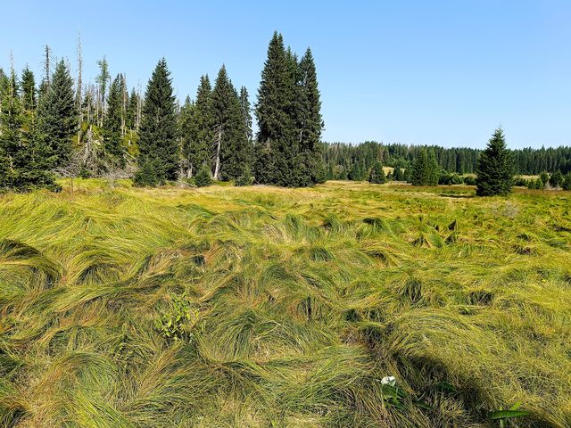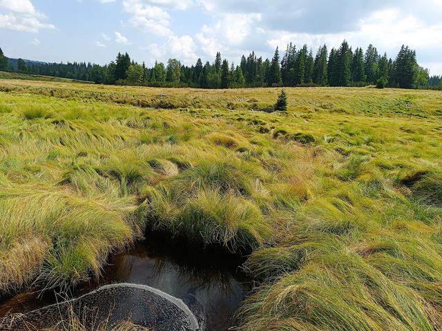 Okolní stromy hodně vyrostly, na Cikánské slati je jich množství, rozlehlá louka už není vidět, lesní porost a traviny všude kolem, chodí se po hatích.