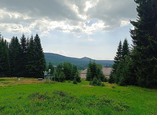Bylo přes 30 °C, trochu se cestou k Modravě sbíraly mraky a spadlo 5 dešťových kapek, dál nic. Naštěstí. V televizi večer hlásili, že na Bučině byla přeháňka.