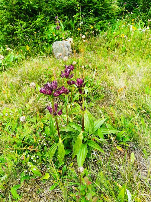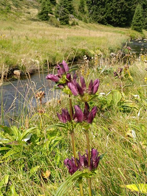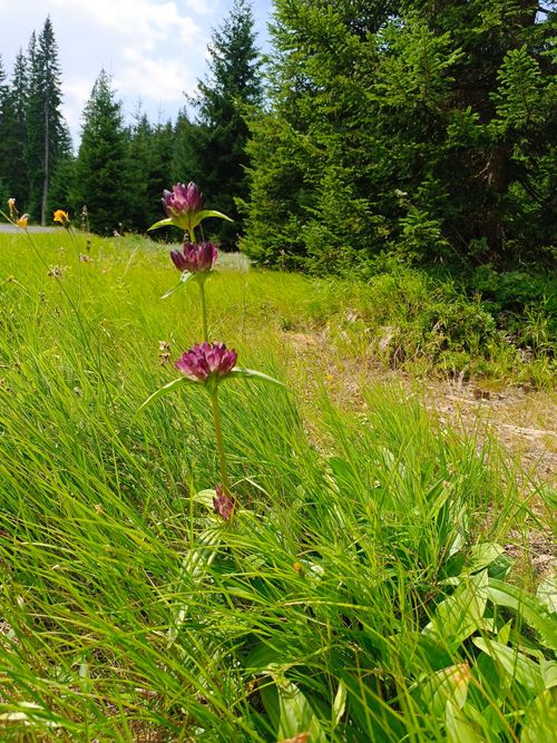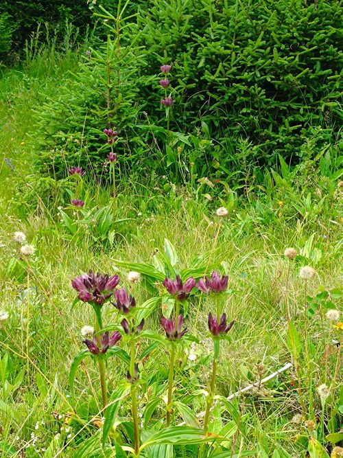 Vydaly jsme se známou cestou do Modravy – a najednou jsme na loučce u potoka uviděly několik nádherných exemplářů hořců panonských – žasly jsme. A potom další a další – prostě unikátní, nevídané, božské. Krásné šťavnaté rostliny až 50 cm vysoké, tmavě fialové barvy, v plném květu. Byl to silný zážitek!! Jejich výskyt byl nejhustší pod Březníkem až ke Ztracenému, pak jich bylo téměř až k Modravě méně, ale stále byly a já jsem nadšeně juchala, Libuška fotila.