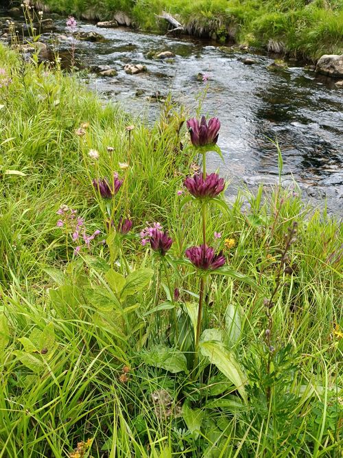 Pod Březníkem je kolem potoka úroda nádherných hořců.