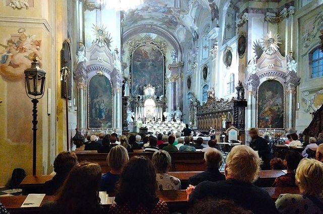 Ve středu 3. září jsme v rámci uvedeného festivalu navštívili kostel sv. Petra a Pavla v Nové Říši, kde v 19 hodin začínal koncert s názvem Nejen oči, ale mysl k Bohu!.