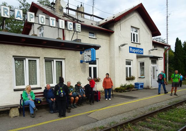 Na nádraží se nás sešlo 10 a vyjeli jsme v 6.26 do Třebíče, kde jsme čekali na přestup přes Náměšť a Kralice do Rapotic, kde jsme byli o půl deváté.