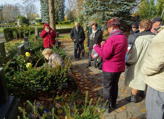 Dále jsme rozžehli světýlka a s vděčností postáli u několika hrobů turistických přátel, kteří zanechali výraznou stopu v regionální turistice a v našich srdcích. Jmenujme Karla Tůmu (1928–2014), který obdržel v roce 2010 Cenu primátora statutárního města Jihlavy za celoživotní přínos v oblasti turistiky a sportu a následujícího roku byl vyhlášen za trenérské úspěchy Nejlepším sportovcem Jihlavska.