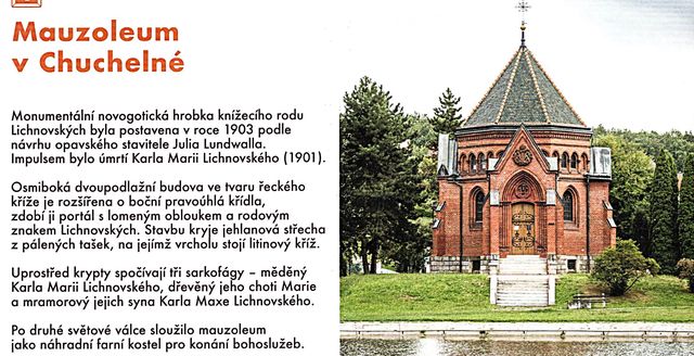 Nejdříve jsme jeli do Chuchelné (okres Opava, asi 1 300 obyvatel), která leží v těsné blízkosti hranic a Polskem,a zašli do podivuhodného mauzolea Lichnovských.