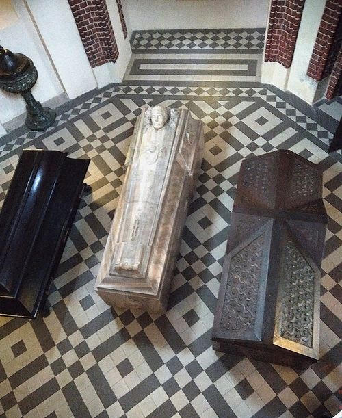 Průvodce nám vysvětlil význam symbolů na knížecím náhrobku – po pravé straně hlavy je holubice, symbol dobra, vlevo je veverka, symbol zla – v nohách je salamandr, hlavou otočený k hlavě knížete. Když se dostane dobro se zlem uvnitř hlavy knížete do střetu, přileze k nim a rozežene je tak, aby měl kníže klid.