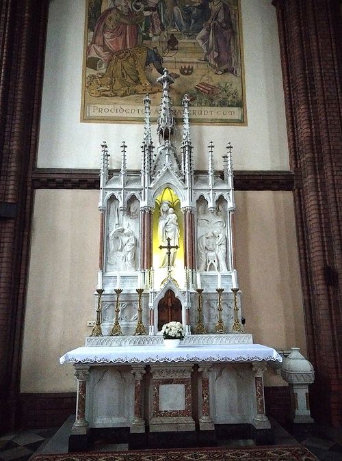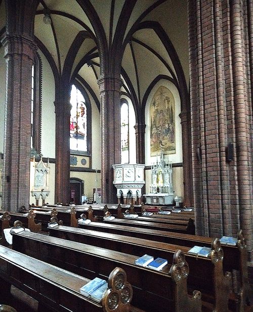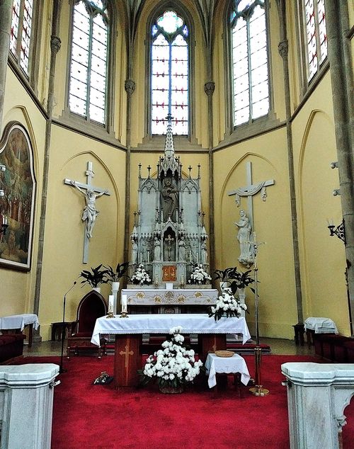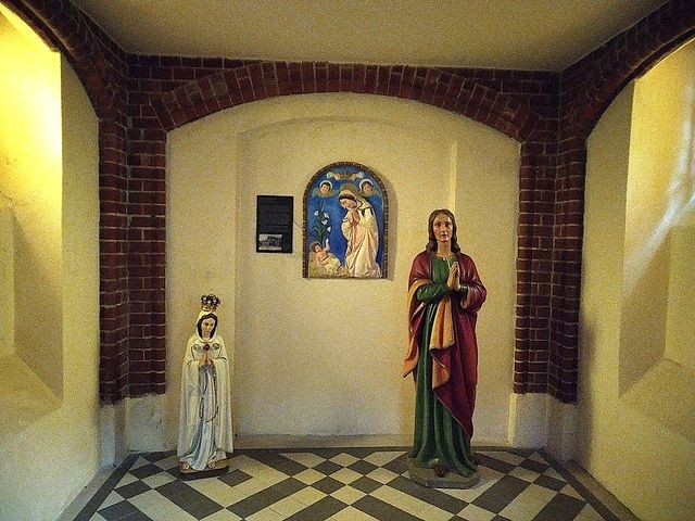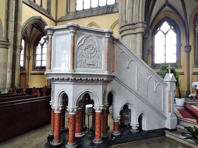 Tady, i v dalších kostelích, jsou po protestantském způsobu mramorové kazatelny, zcela jiné než např. na Vysočině, a stále se používají – viděli jsme to v neděli v Ludgeřovicích při mši svaté. Kostely jsou zpravidla zasvěcené sv. Janu Křtiteli, Nejsvětější Trojici či Nejsvětějšímu Srdci Ježíšovu – jinde na Moravě a v Čechách je časté zasvěcení Panně Marii – toto patrocinium zde neuvidíte.