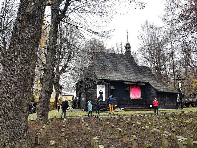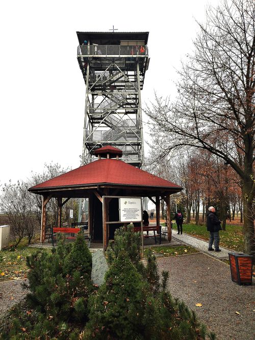 Vlastně jsme si jeli prohlédnout dřevěný kostelík ve Velkých Petrovicích a pak vystoupat po svahu na kovovou rozhlednu z roku 2018.