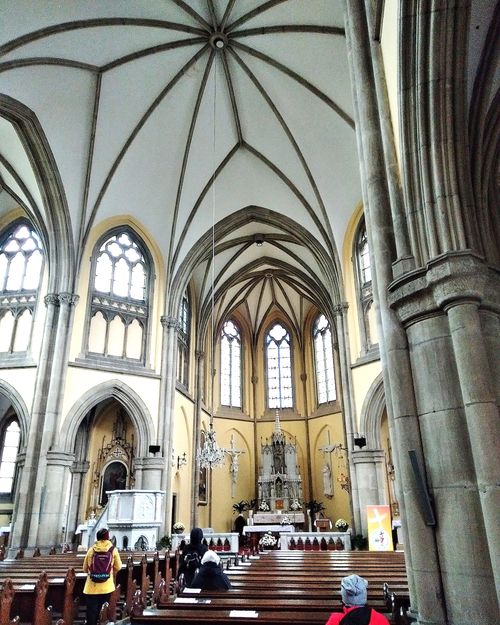 Kostel je obrovský, interiér naprosto vysmejčený, zářící zlatem a hvězdami, kříže venkovní svítí jak klenoty. Vešli jsme dovnitř zcela zaplněného rozlehlého kostela, právě probíhala mše svatá s poděkováním za jeho postavení.