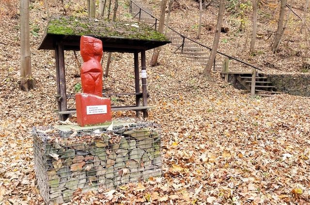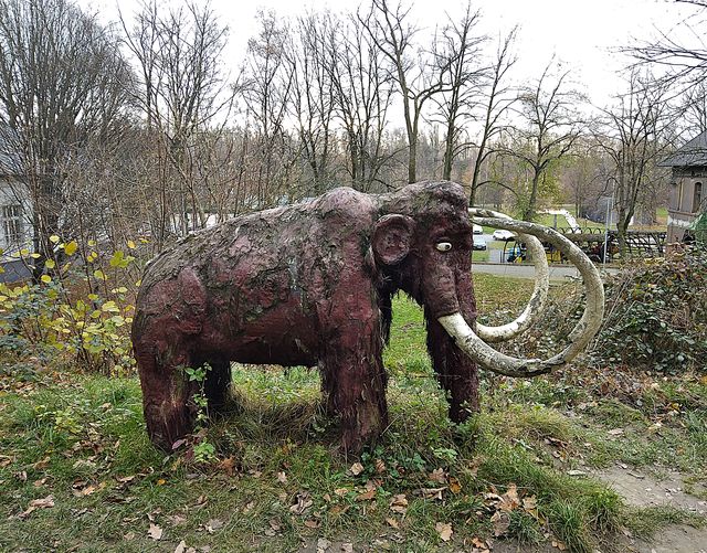 Zašli jsme k další turistické atraktivitě – na nedalekém pahorku, vyvýšeném asi o 90 metrů nad okolní krajinu, bývalo sídliště pravěkých lidí – lokalita je označená informační tabulí, stojí tam figura mamutího mláděte, pár stylizovaných přístřešků, ohniště atp.