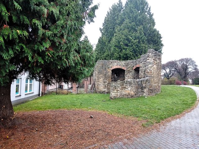 Na infodesce jsme se dočetli, že tu mají být dva smírčí kameny, ale nemohli jsme je najít a stmívalo se – klátivý štamgast, který kouřil před hospodou, nás nasměroval – nedaleko, naproti parku, jsme uviděli smírčí kříže z přelomu 15. a 16. století.