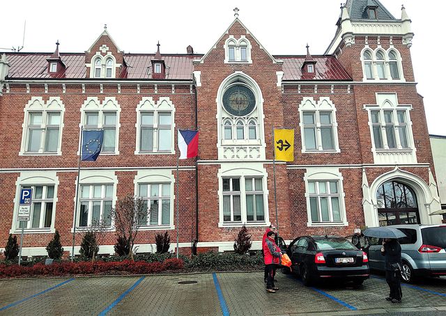 Vrátili jsme se zpátky do Hlučína na oběd, nikde jinde jsme neobjevili vhodnou restauraci, a zašli zase do Kozlovky – jídlo bylo k jídlu. Mezitím se značně zhoršilo počasí – zima a vítr nás provázely do Hošťálkovic na rozhlednu.