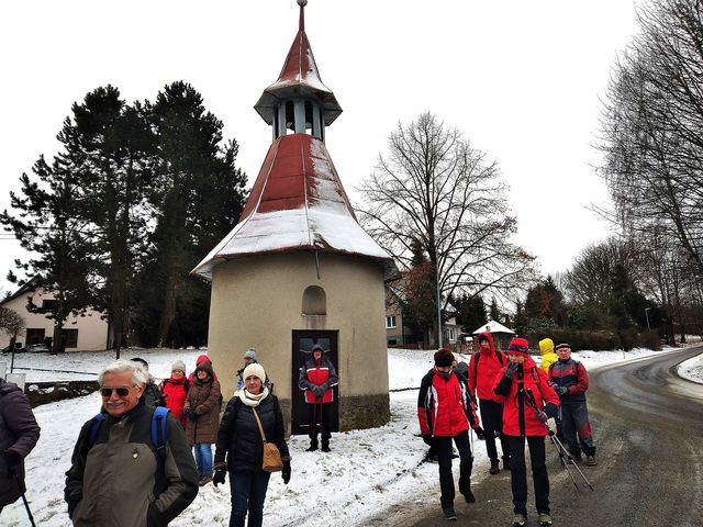 Vycházka byla velice příjemná, mile vánoční, občas některá z turistek nabídla cukroví, lesní cesty poprášené jemným jiskřivým sněhem, vítr nezlobil, většinou spal.