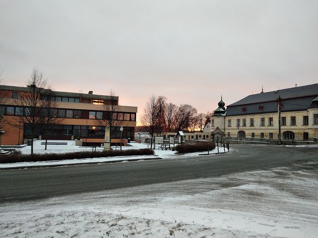 Od počátku 13. století stála v Jeníkově tvrz, kterou v roce 1729 přestavěl rytíř Jan Minetti na barokní zámek. Dnešní podobu získaly budovy na samém počátku 20. století. V současnosti tu sídlí úřad městyse.