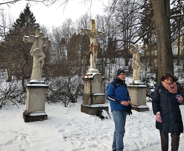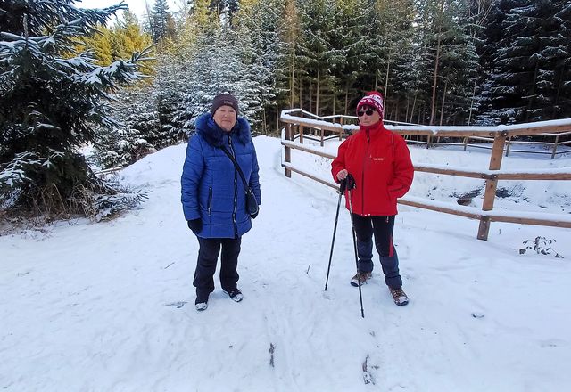 S Ivou, která se jako pořadatelka odboru KČT Tesla Jihlava zúčastnila v první části spolu s Miluškou Číhalovou a Václavem Plánkou vítání příchozích, jsem se odebrala na slavnostní obřad „První zvonění nových zvonů na nejstarším kostele sv. Jana Křtitele v Jihlavě“. Druhé části příchozích na Čeřínek se cele oddali Míla Bradová, Lída Březinová a František Janeček – obě skupiny překonaly novoroční nevlídné počasí bez úhony. 🙂