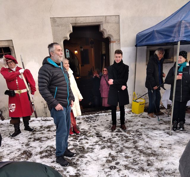 Setkání probíhalo slavnostně, za přítomnosti stafáže jihlavské gardy promluvil i farář Marian Husek, který nové zvony posvětil v červnu 2025. Závěrem dnešního obřadu vyzval farář místní farnosti přítomné, aby zazpívali píseň Narodil se Kristus Pán – mohu říci, že v nedělním odpoledni zněl stohlasý zpěv na historickém místě, kde kdysi vzniklo naše město, až dojímavě.