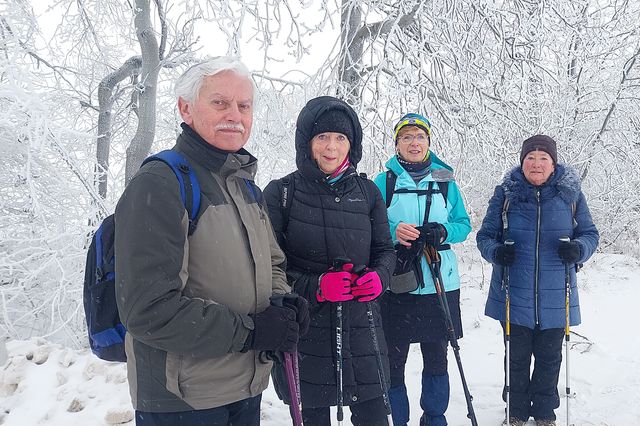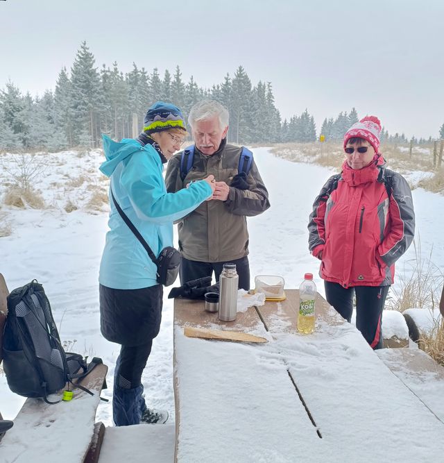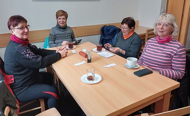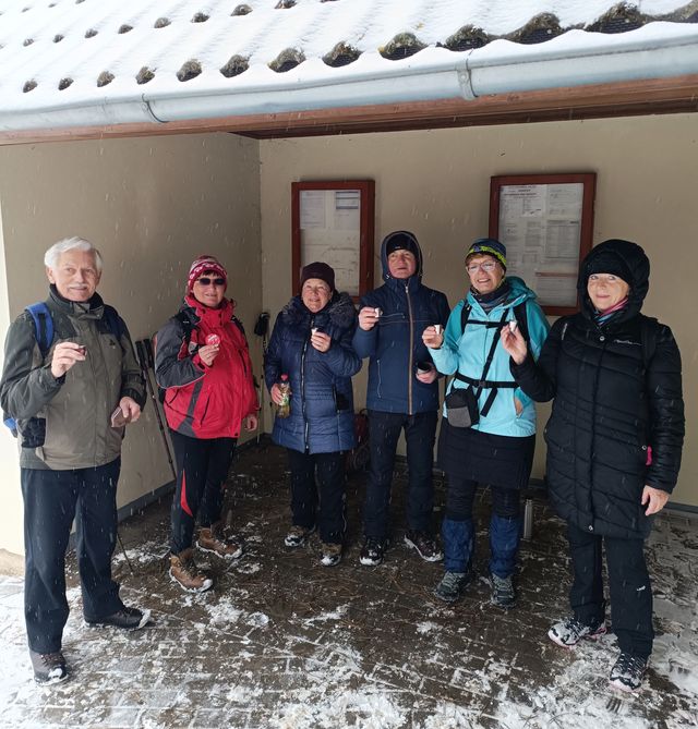 Naše skupina strávila po ušlapaných 14ti kilometrech v husté mlze a větru příjemné chvíle u dobrého jídla v hostinci a odjížděla domů autobusem v 16.28 hodin.