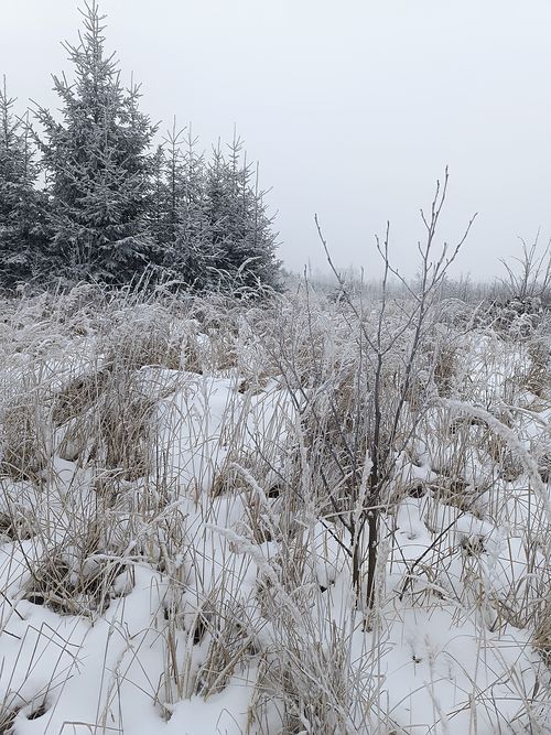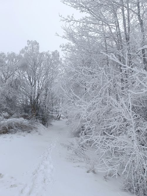 V další části cesty jsme obešli rybník U Stěny a vydali se na problémovou část, která asi kilometr vede podél silnice, pak po podejití dálničního mostu zakrátko neznačená cesta uhýbá vlevo tam, kde kdysi býval les a nyní je paseka, která však utěšeně obrůstá. Po vystoupení na kopec, z něhož bývají nádherné výhledy, jsme si o nich v husté mlze jen popovídali a mladým lesem šli vstříc hostinci ve Ždírci.