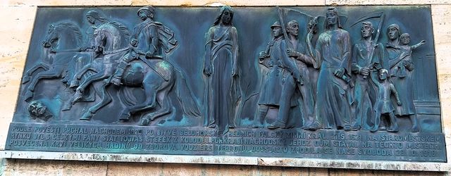 Text na desce: Podle pověsti prchal Náchodem 1620 po bitvě bělohorské Bedřich Falcký, zimní král.