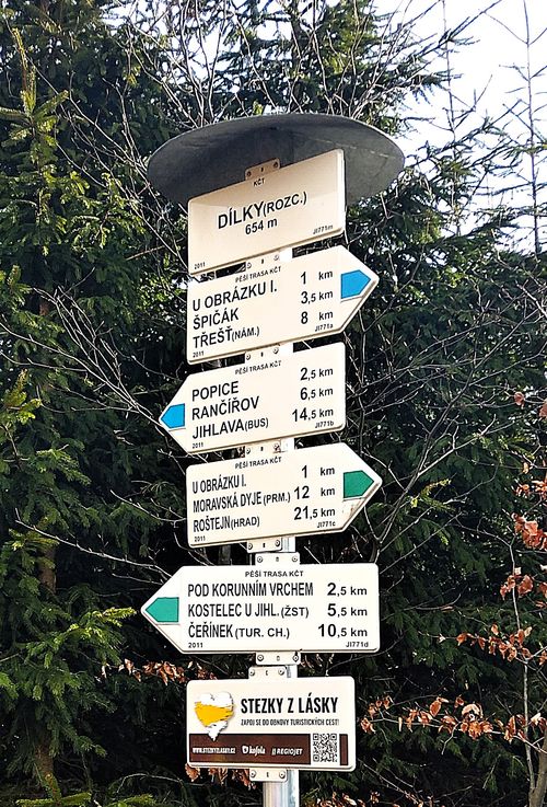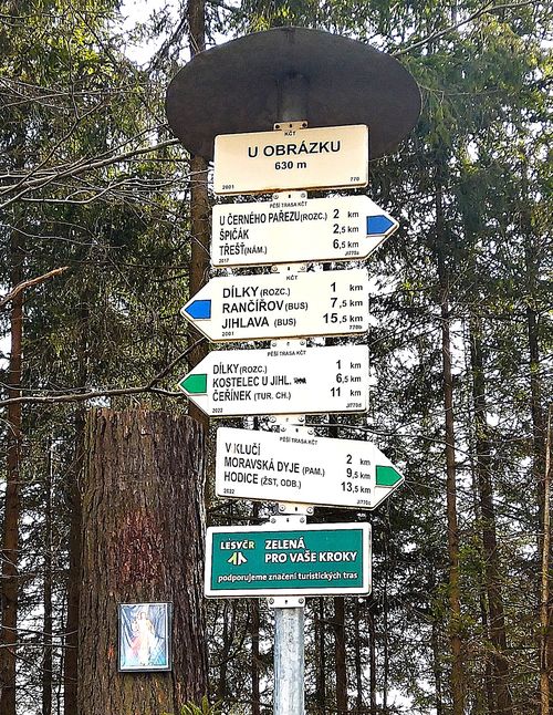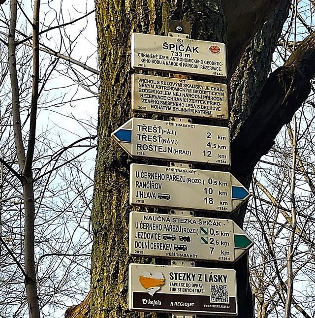 Stále po modře značené trase jsme sestoupili známou cestou do Třeště.