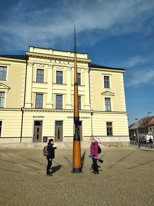 Pro odlehčení jsme si s děvčaty prohlédly unikátní sluneční hodiny, instalované na třešťském náměstí T. G. Masaryka v roce 2003.
