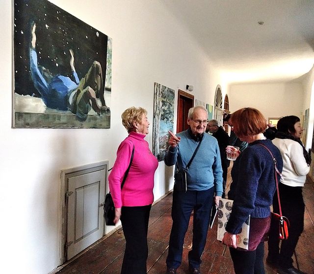 Druhá část programu patřila zahájení výstavy obrazů profesora Daniela Balabána – jeho promluva ke shromážděným byla další dávkou vytříbených myšlenek, obdivu k přírodě a zamyšlení o stavu dnešního světa. Kurátor Zdeněk Freisleben přiblížil obrazy z cyklu V paměti a pozval nás k prohlídce.